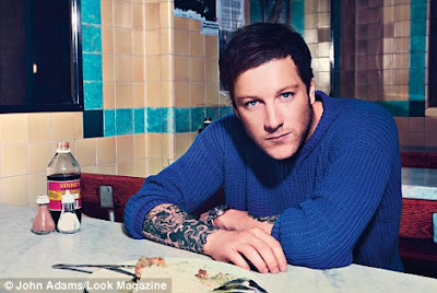 Promo trail: The 28-year-old is currently promoting his new single Run For Your LifePerhaps in an effort to regain some of the edginess he feels he lost after wearing those yellow trousers, Matt sports fake tattoo sleeves in the shoot, staged in a greasy spoon-style cafe.